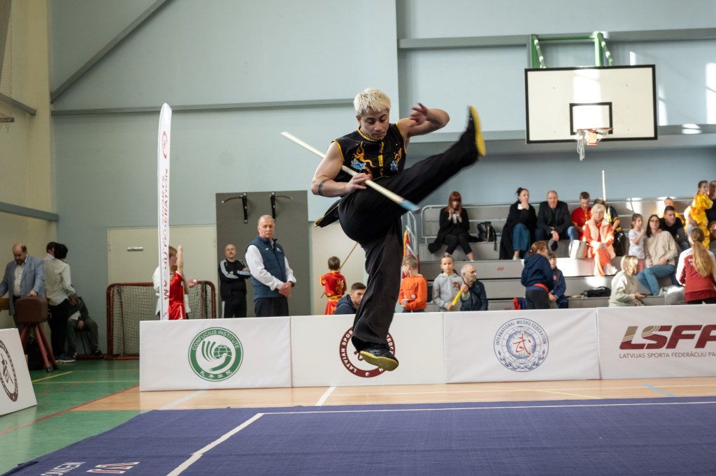 El Wushu se caracteriza por sus acrobacias dinámicas, movimientos fluidos y rutinas de alta intensidad, lo que lo hace visualmente atractivo y adecuado tanto para competiciones deportivas como para entretenimiento.